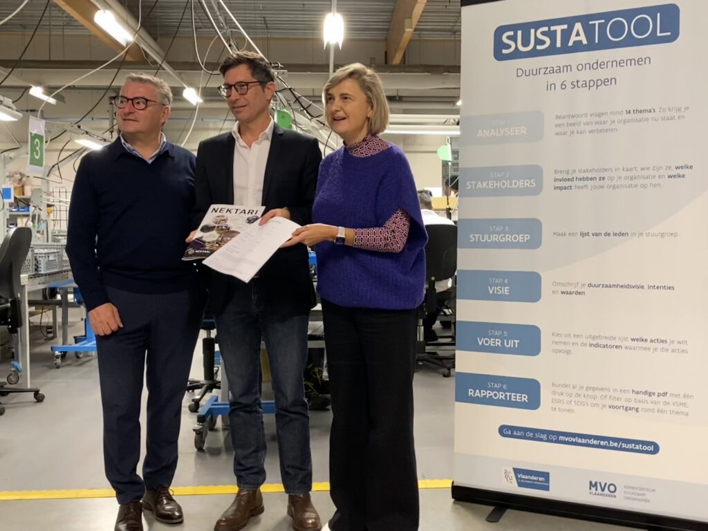 Bij NEKTARI kregen we op 15 oktober bijzonder bezoek: minister van Sociale Economie Hilde Crevits kwam langs op campus Flexpack om de vernieuwde Sustatool officieel te lanceren. Deze gratis, gebruiksvriendelijke digitale tool helpt ondernemingen om hun duurzaamheidsbeleid concreet, meetbaar en structureel te verankeren in hun werking.